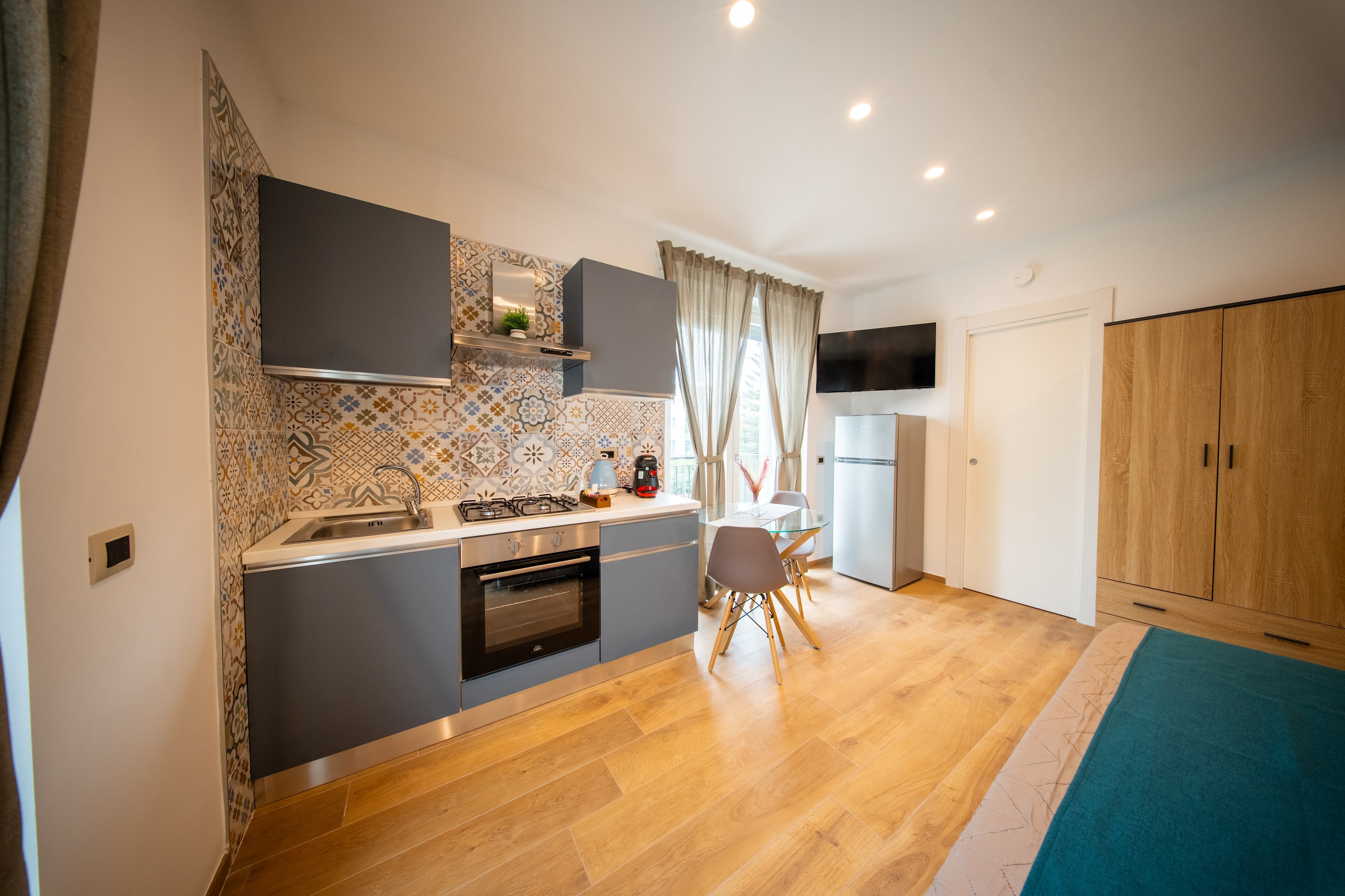 Ambiente luminoso e finemente arredato, ideale per chi cerca un soggiorno rilassante. La cucina attrezzata permette piena autonomia in uno spazio elegante e ben progettato.