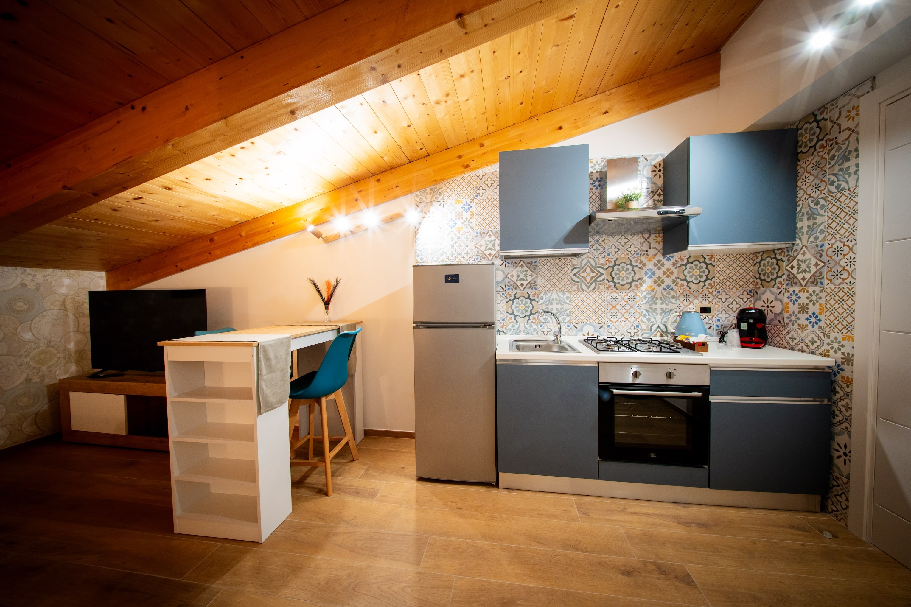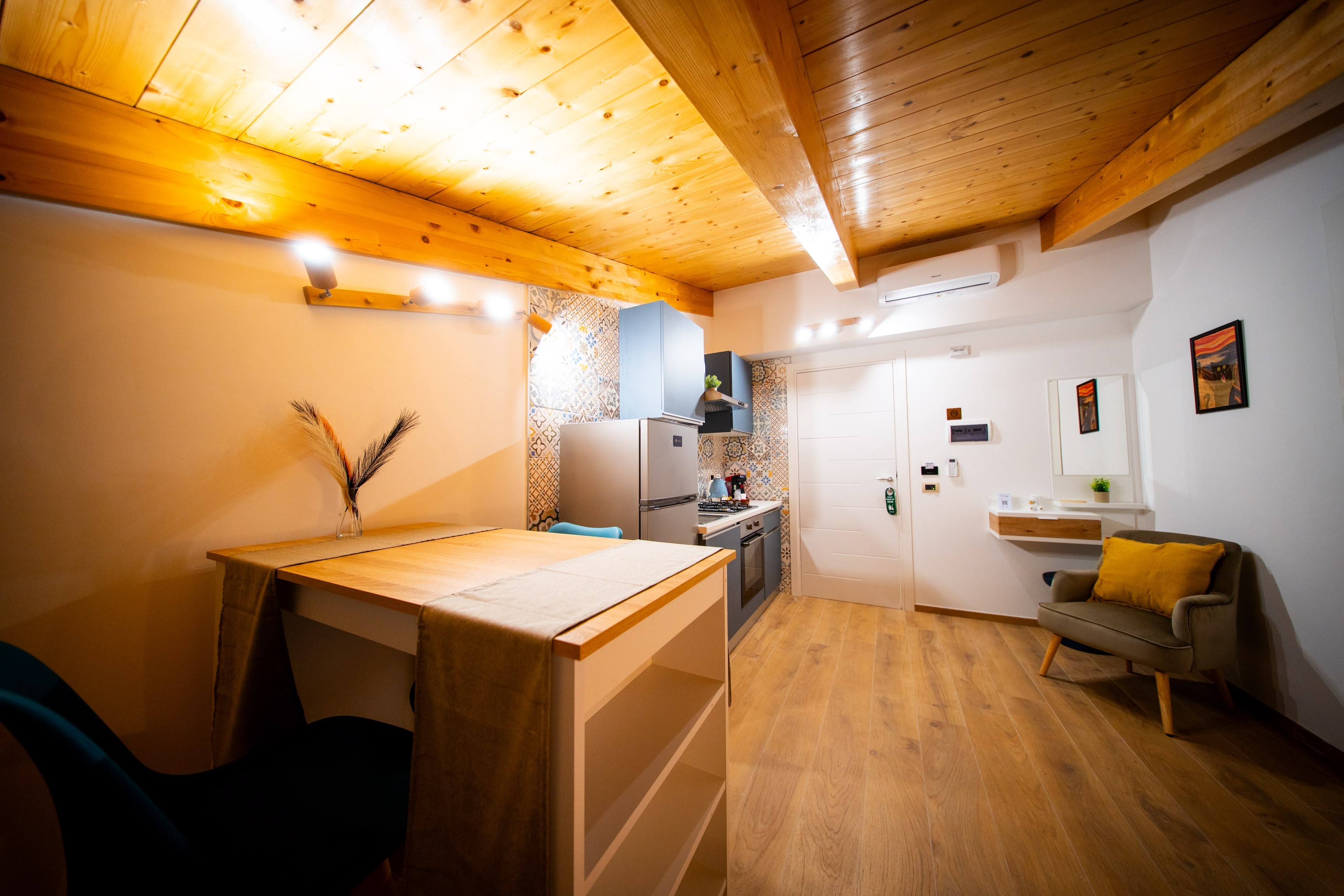 Ambiente luminoso e finemente arredato, ideale per chi cerca un soggiorno rilassante. La cucina attrezzata permette piena autonomia in uno spazio elegante e ben progettato.