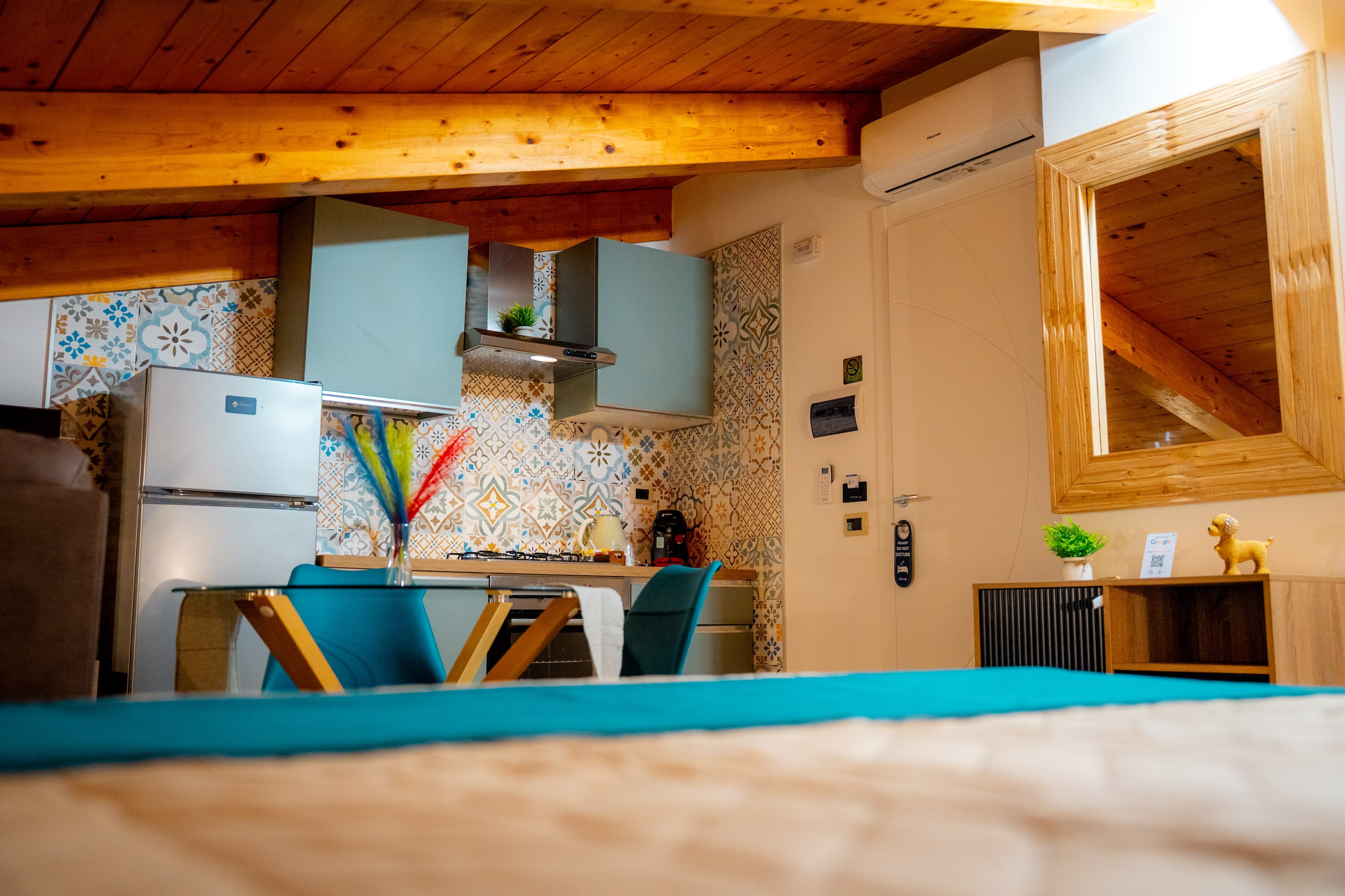 Ambiente luminoso e finemente arredato, ideale per chi cerca un soggiorno rilassante. La cucina attrezzata permette piena autonomia in uno spazio elegante e ben progettato.